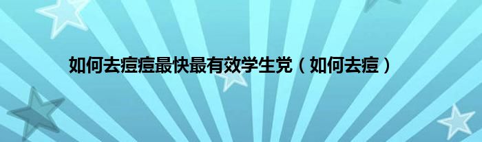 以上就是【如何去痘痘最快最有效学生党,如何去痘】相关内容。