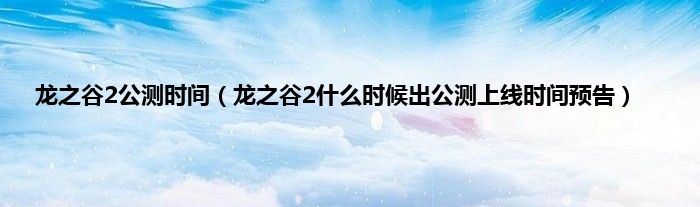 欢迎观看本篇文章,小升来为大家解答以上问题。龙之谷2公测时间,龙之谷2什么时候出公测上线时间预告很多人还不知道,现在让我们一起来看看吧!