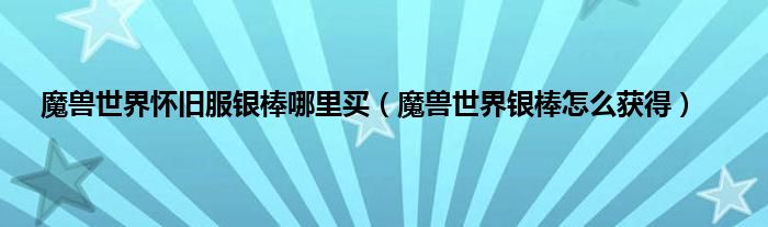 欢迎观看本篇文章,小升来为大家解答以上问题。魔兽世界怀旧服银棒哪里买,魔兽世界银棒怎么获得很多人还不知道,现在让我们一起来看看吧!