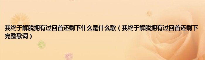 欢迎观看本篇文章,小升来为大家解答以上问题。我终于解脱拥有过回首还剩下什么是什么歌,我终于解脱拥有过回首还剩下完整歌词很多人还不知道,现在让我们一起来看看吧!