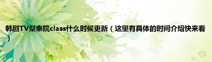 欢迎观看本篇文章,小升来为大家解答以上问题。韩剧TV梨泰院class什么时候更新,这里有具体的时间介绍快来看很多人还不知道,现在让我们一起来看看吧!