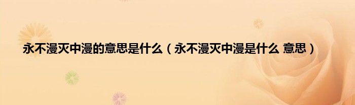 欢迎观看本篇文章,小升来为大家解答以上问题。永不漫灭中漫的意思是什么,永不漫灭中漫是什么 意思很多人还不知道,现在让我们一起来看看吧!