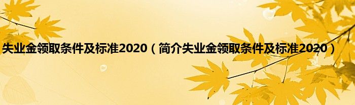 欢迎观看本篇文章,小升来为大家解答以上问题。失业金领取条件及标准2020,简介失业金领取条件及标准2020很多人还不知道,现在让我们一起来看看吧!