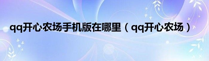 以上就是【qq开心农场手机版在哪里,qq开心农场】相关内容。