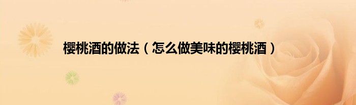 欢迎观看本篇文章,小升来为大家解答以上问题。樱桃酒的做法,怎么做美味的樱桃酒很多人还不知道,现在让我们一起来看看吧!