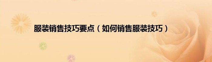 欢迎观看本篇文章,小升来为大家解答以上问题。服装销售技巧要点,如何销售服装技巧很多人还不知道,现在让我们一起来看看吧!