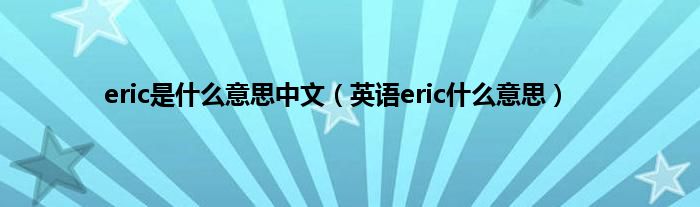 欢迎观看本篇文章,小升来为大家解答以上问题。eric是什么意思中文,英语eric什么意思很多人还不知道,现在让我们一起来看看吧!