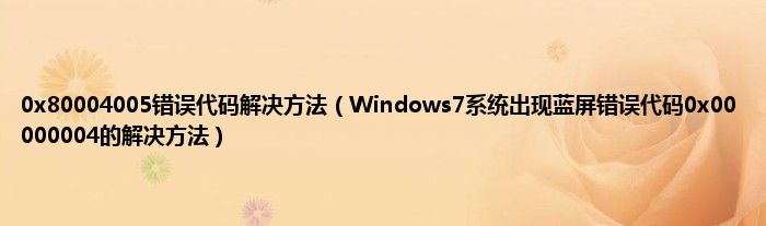 大家好,综合小编来为大家讲解下0x80004005错误代码解决方法,Windows7系统出现蓝屏错误代码0x00000004的解决方法这个很多人还不知道,现在让我们一起来看看吧!