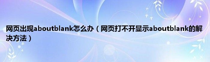 大家好,综合小编来为大家讲解下网页出现aboutblank怎么办,网页打不开显示aboutblank的解决方法这个很多人还不知道,现在让我们一起来看看吧!