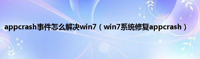 大家好,综合小编来为大家讲解下appcrash事件怎么解决win7,win7系统修复appcrash这个很多人还不知道,现在让我们一起来看看吧!