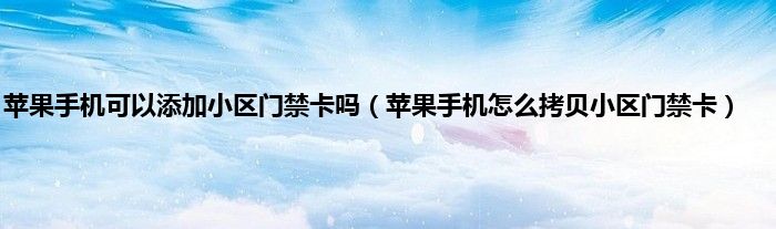 大家好,综合小编来为大家讲解下苹果手机可以添加小区门禁卡吗,苹果手机怎么拷贝小区门禁卡这个很多人还不知道,现在让我们一起来看看吧!