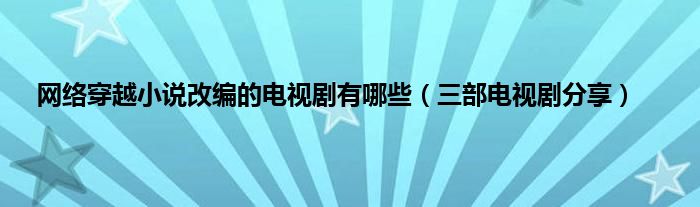 欢迎观看本篇文章,小升来为大家解答以上问题。网络穿越小说改编的电视剧有哪些,三部电视剧分享很多人还不知道,现在让我们一起来看看吧!