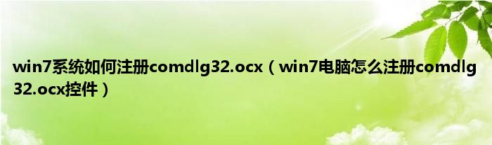 大家好,综合小编来为大家讲解下win7系统如何注册comdlg32.ocx,win7电脑怎么注册comdlg32.ocx控件这个很多人还不知道,现在让我们一起来看看吧!