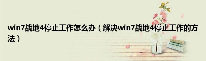 大家好,综合小编来为大家讲解下win7战地4停止工作怎么办,解决win7战地4停止工作的方法这个很多人还不知道,现在让我们一起来看看吧!