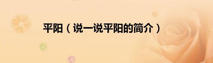 夏弥来为大家解答以下的问题,平阳,说一说平阳的简介,现在让我们一起来看看吧!