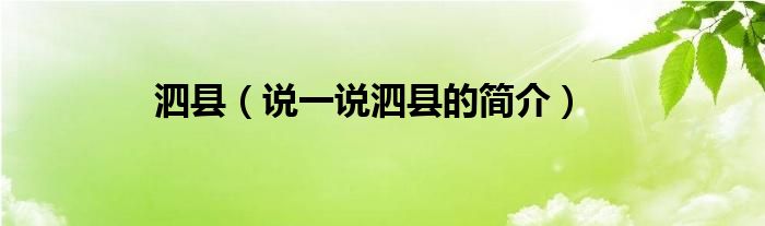 夏弥来为大家解答以下的问题,泗县,说一说泗县的简介,现在让我们一起来看看吧!