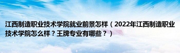 大家好,乐儿来为大家解答以下问题,江西制造职业技术学院就业前景怎样,2022年江西制造职业技术学院怎么样?王牌专业有哪些?很多人还不知道,现在让我们一起来看看吧!