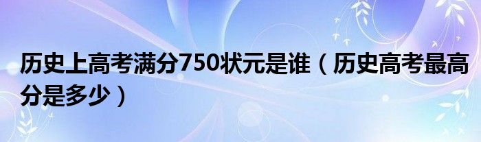 大家好,乐儿来为大家解答以下问题,历史上高考满分750状元是谁,历史高考最高分是多少很多人还不知道,现在让我们一起来看看吧!