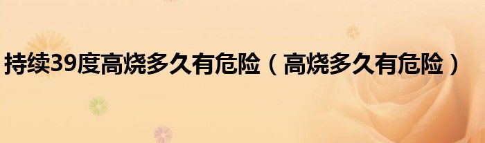 大家好,乐天来为大家解答以下的问题,持续39度高烧多久有危险,高烧多久有危险很多人还不知道,现在让我们一起来看看吧!