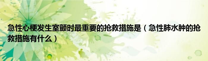 急性心梗发生室颤时最重要的抢救措施是(急性肺水肿的抢救措施有什么)