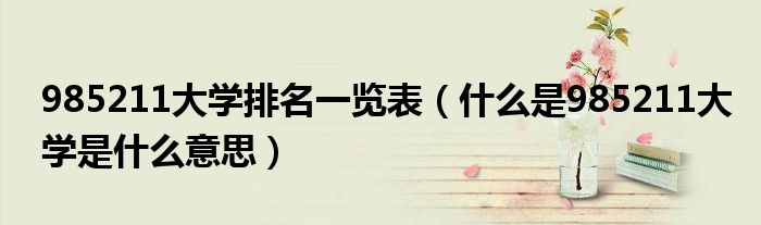 关于985211大学排名一览表,什么是985211大学是什么意思这个很多人还不知道,今天菲菲来为大家解答以上的问题,现在让我们一起来看看吧!