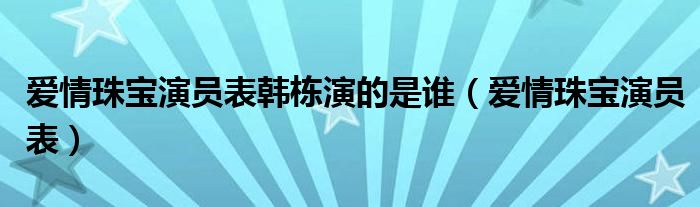 关于爱情珠宝演员表韩栋演的是谁,爱情珠宝演员表这个很多人还不知道,今天菲菲来为大家解答以上的问题,现在让我们一起来看看吧!