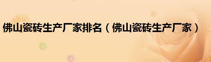 关于佛山瓷砖生产厂家排名,佛山瓷砖生产厂家这个很多人还不知道,今天菲菲来为大家解答以上的问题,现在让我们一起来看看吧!