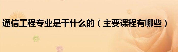 通信工程专业是干什么的(主要课程有哪些)