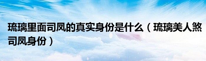 关于琉璃里面司凤的真实身份是什么,琉璃美人煞司凤身份这个很多人还不知道,今天菲菲来为大家解答以上的问题,现在让我们一起来看看吧!