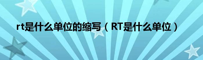 大家好,乐儿来为大家解答以下问题,rt是什么单位的缩写,RT是什么单位很多人还不知道,现在让我们一起来看看吧!