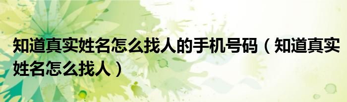 关于知道真实姓名怎么找人的手机号码,知道真实姓名怎么找人这个很多人还不知道,今天菲菲来为大家解答以上的问题,现在让我们一起来看看吧!