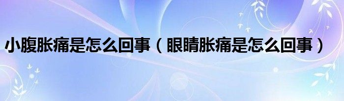 大家好,乐天来为大家解答以下的问题,小腹胀痛是怎么回事,眼睛胀痛是怎么回事很多人还不知道,现在让我们一起来看看吧!