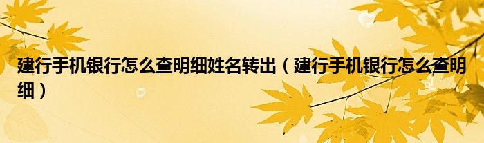 关于建行手机银行怎么查明细姓名转出,建行手机银行怎么查明细这个很多人还不知道,今天菲菲来为大家解答以上的问题,现在让我们一起来看看吧!