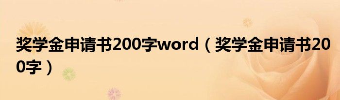 关于奖学金申请书200字word,奖学金申请书200字这个很多人还不知道,今天菲菲来为大家解答以上的问题,现在让我们一起来看看吧!