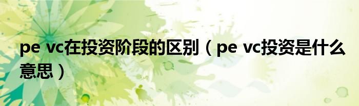 关于pe vc在投资阶段的区别,pe vc投资是什么意思这个很多人还不知道,今天菲菲来为大家解答以上的问题,现在让我们一起来看看吧!