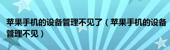 关于苹果手机的设备管理不见了,苹果手机的设备管理不见这个很多人还不知道,今天菲菲来为大家解答以上的问题,现在让我们一起来看看吧!