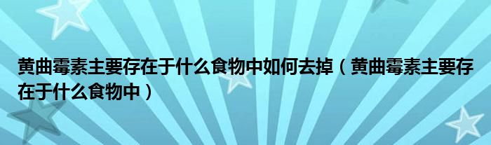 关于黄曲霉素主要存在于什么食物中如何去掉,黄曲霉素主要存在于什么食物中这个很多人还不知道,今天菲菲来为大家解答以上的问题,现在让我们一起来看看吧!