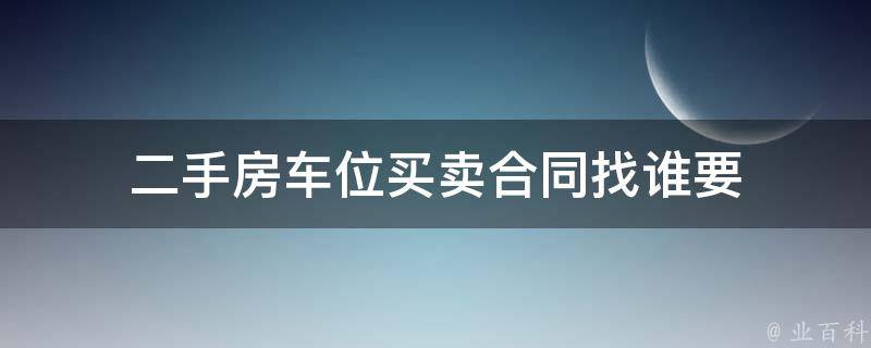 二手房车位买卖合同找卖方要,通常情况下,卖方会提供相应的合同文件。如果买卖过程通过中介或经纪人进行,买方也可以向中介或经纪人要求提供买卖合同。在购买和销售二手房车位时,签订合同是一种重要的法律保护措施,可以维护双方的权益并规范交易过程。