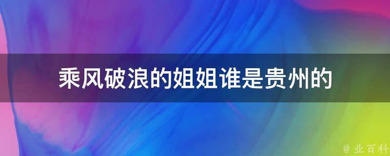 乘风破浪的姐姐宁静是贵州的,《乘风破浪的姐姐》是一档明星真人秀节目,参演嘉宾有宁静、张雨绮等,其中只有宁静来自贵州省贵阳市,且毕业于上海戏剧学院,是中国影视女演员、歌手,也是上海电影演员剧团演员、国家一级演员。