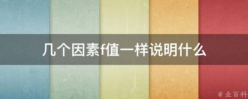 当几个因素的f值(F-value)相同时,这可能表示这些因素在样本中对因变量的影响力相似。在统计分析中,f值用于衡量不同因素对于因变量的解释程度或显著性。如果多个因素的f值接近或相等,那么它们可能在解释因变量方面具有相似的重要性或效果。