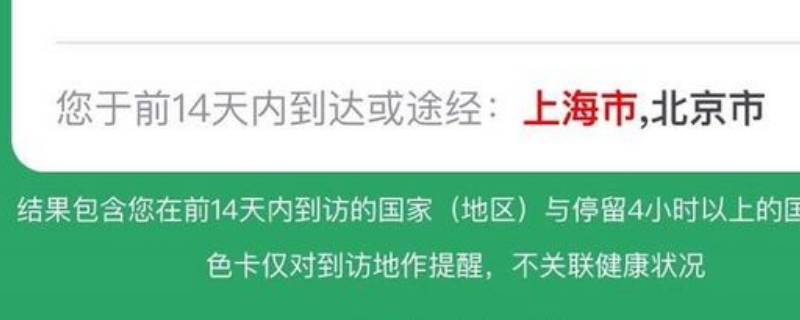当获取行程码后,行程卡会根据你的近期行程显示颜色,一共四种:绿卡、黄卡、橙卡、红卡。红卡是行程中的中高风险地区将标记为红色字体作出提示,橙卡是新冠肺炎确诊或疑似患者的密切接触者,黄卡是海外国家和地区,绿卡是其他地区,也相当于没太大问题。