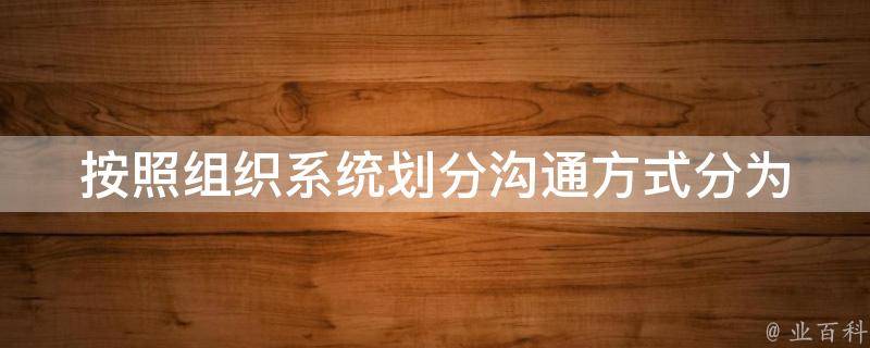 按照组织系统划分沟通方式分为正式沟通和非正式沟通。正式沟通是指在组织内部通过规定渠道、规定方法进行的信息传递和交流,如文件、邮件、会议等方式;非正式沟通则是指没有规定渠道、比较随意的信息传递和交流方式,如私人聊天、社交媒体等方式。