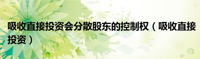 大家好,小联来为大家解答以上的问题。吸收直接投资会分散股东的控制权,吸收直接投资这个很多人还不知道,现在让我们一起来看看吧!