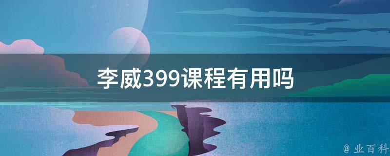 李威399课程有用。老师亲传授三大高效学习记忆方法,将记忆方法与中小学教材知识想结合,激发孩子学习兴趣。课程通过记忆训练内容相结合的方式,提升孩子学习自信心。课程内容易懂、即学即用,具体效果还要看个人的理解以及使用程度。