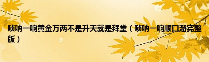 大家好,小联来为大家解答以上的问题。唢呐一响黄金万两不是升天就是拜堂,唢呐一响顺口溜完整版这个很多人还不知道,现在让我们一起来看看吧!