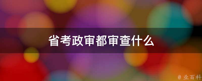 省考政审主要是审查考生的政治思想、道德品质、能力素质、遵纪守法、廉洁自律、职位匹配、学习和工作表现以及需要回避的情况等,重点了解政治表现和政治倾向,并对档案进行严格审核,重点审核年龄、工龄、党龄、学历、工作经历等内容。
