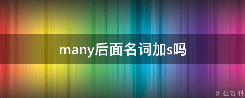 many后面名词加s。many是修饰可数名词的,其后面的单词必须加s。many,英语单词,限定词、代词、形容词、名词,作限定词时意为许多;作代词时意为许多、许多人;作形容词时意为许多的;作名词时意为大多数人。