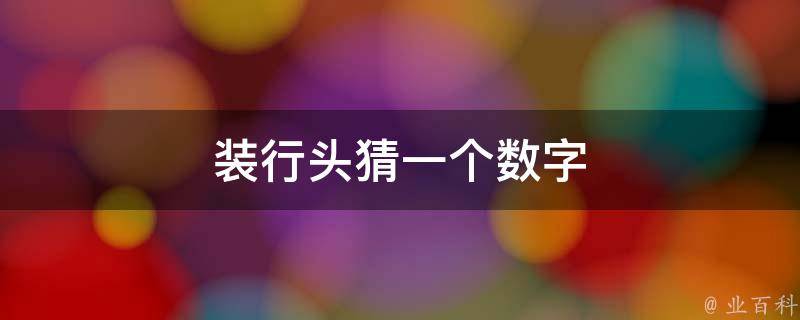 装行头猜一个数字是1。因为行头是古代对戏曲服装的称谓,是衣服的一种,而衣与数字1是谐音,所以,装行头猜一个数字是1。在数字谐音中,1代表唯一、你、起点的意思。