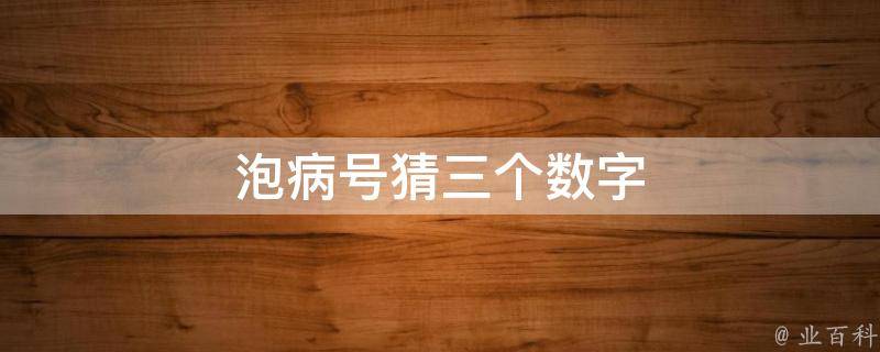 泡病号猜三个数字是815,因为泡是8划,病号一共是15划,所以,泡病号猜三个数字是指815。在数字谐音中,8代表发、拜拜、不;1代表唯一、你、起点;而5代表我、无。