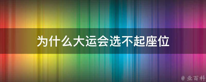 大运会选不起座位可能是由于系统或技术原因,导致无法提供座位选择服务。此外,大运会座位的选择可能受到场馆容量、赛事规模、票务政策等多种因素的影响,也可能导致无法自由选择座位。因此,如果遇到这种情况,建议联系相关机构或部门进行咨询和解决。